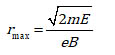The cyclotron orbit is illustrated by the circle of radius r. The