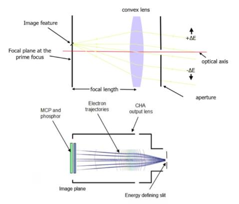 trajectories that fall within the 0.35 mm output slit of the CHA are