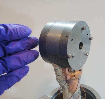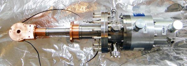 previous page was encapsulated in a thermally conducting shell using OFC copper, this is shown attached to the cold