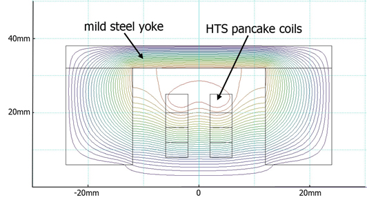 steel yoke. Without the yoke, the on-axis field is only 1.45 Tesla.